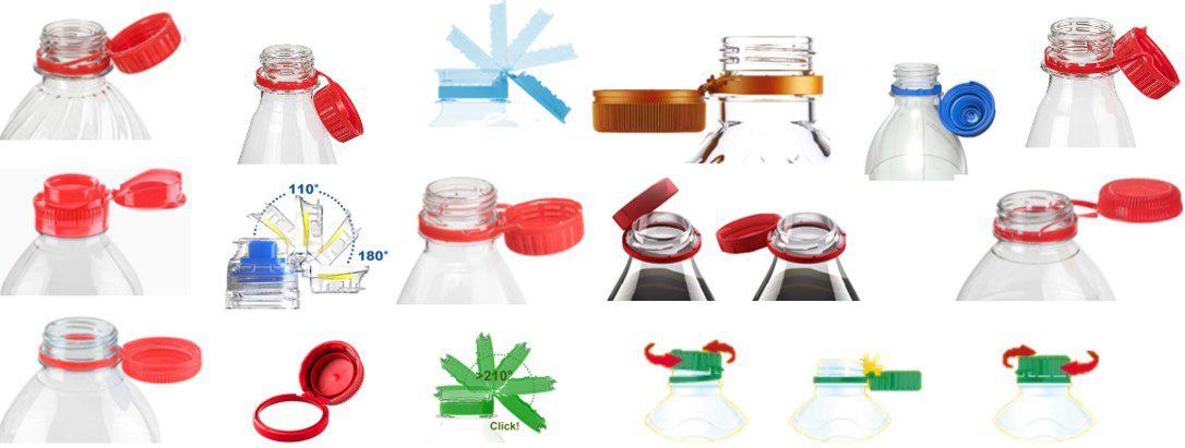 A côté de cette première solution, les fabricants de bouchons et les sociétés de conditionnement ont développé des bouchons à vis solidaires pour bouteilles PET et travaillé sur des solutions pour bouteilles et contenants en PEHD.